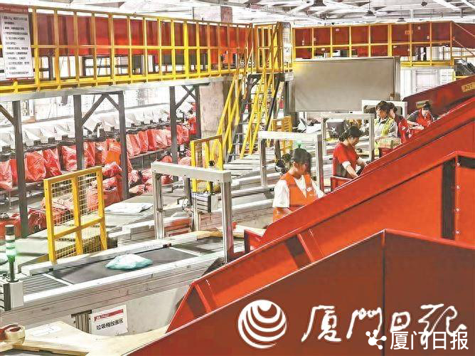 位于同安的京东“亚洲一号仓”内,自动化设备分拣快件让快件破损率和包装强度需求下降。